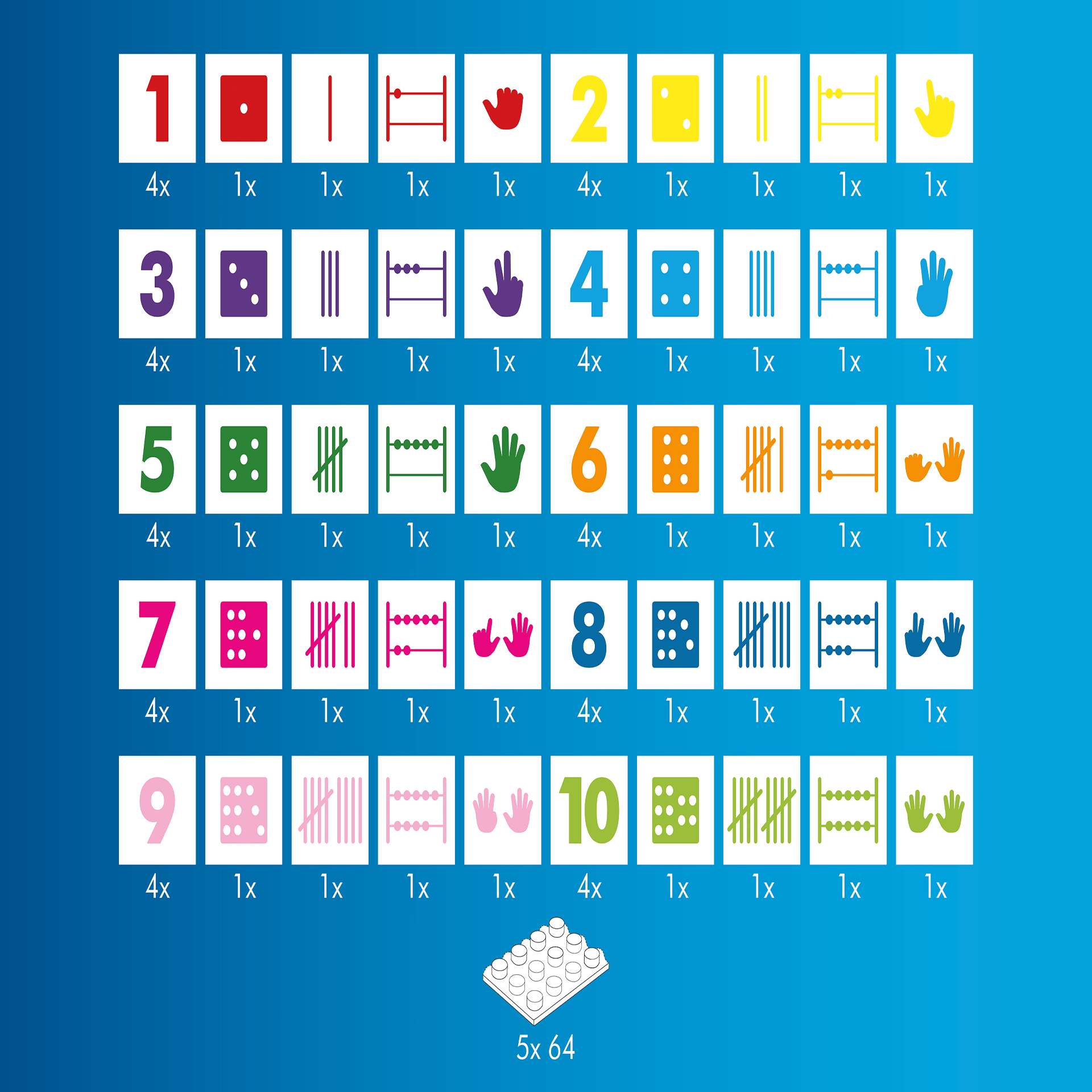 Joc Hubelino pentru copii de invatat numerele (85 piese) – cu jocul de invatare „Invatarea numerelor”, descoperi secretul numerelor. Fiecare numar de la 1 la 10 este reprezentat in mod clar grafic in patru moduri diferite. Asa ca intelegi cantitatile si cunosti lumea numerelor. Diversele posibilitati si idei de joc pe care le ofera acest set asigura o intelegere substantiala si deschide calea pentru primele sarcini aritmetice.