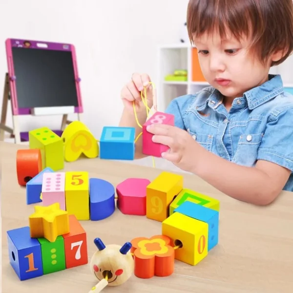 Joc Indemanare Snuruit Forme Geometrice Omida face parte din pedagogia Montessori,ca material didactic,pentru educatie timpurie.