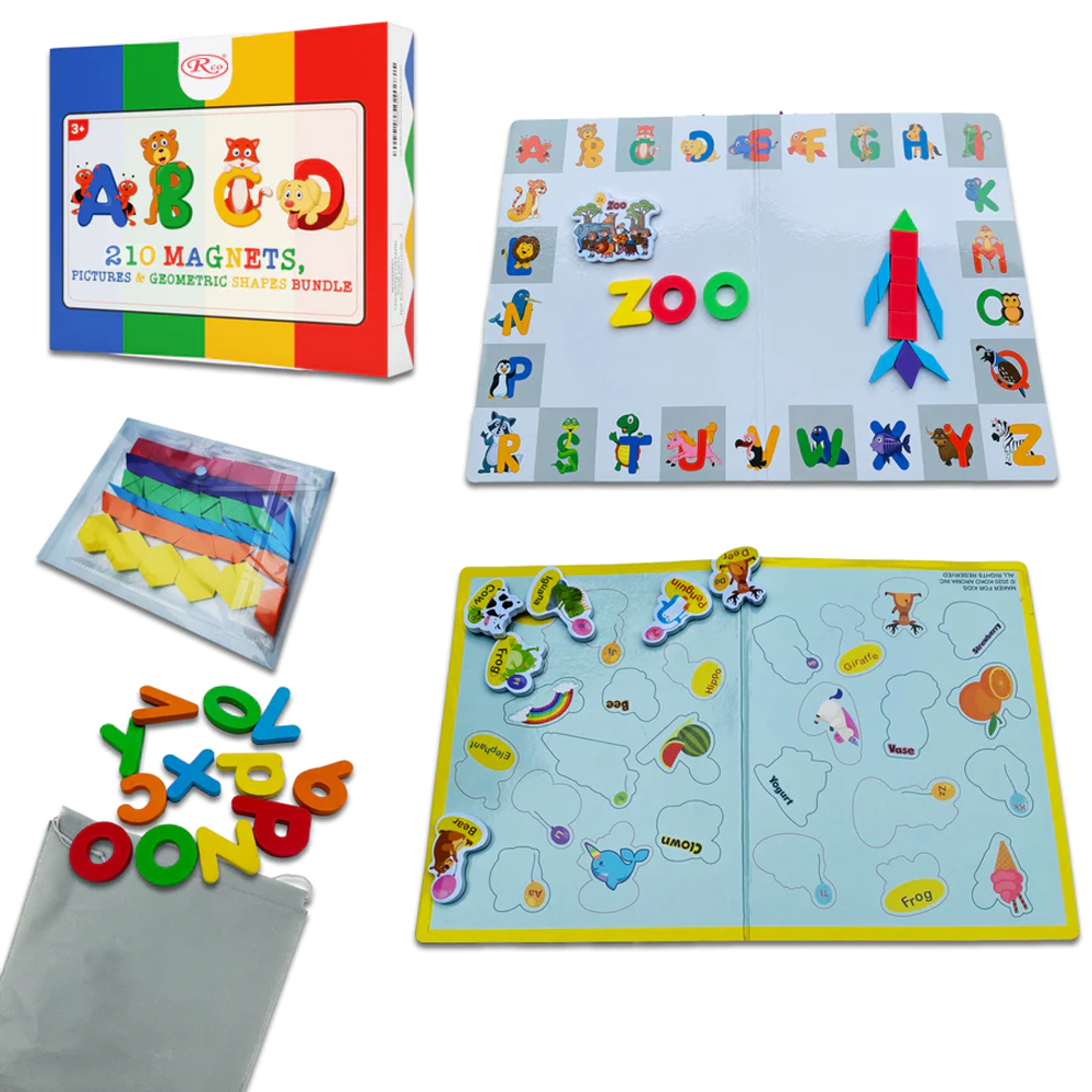 Joc Magnetic STEM cu Litere Cifre Forme Geometrice 210Piese