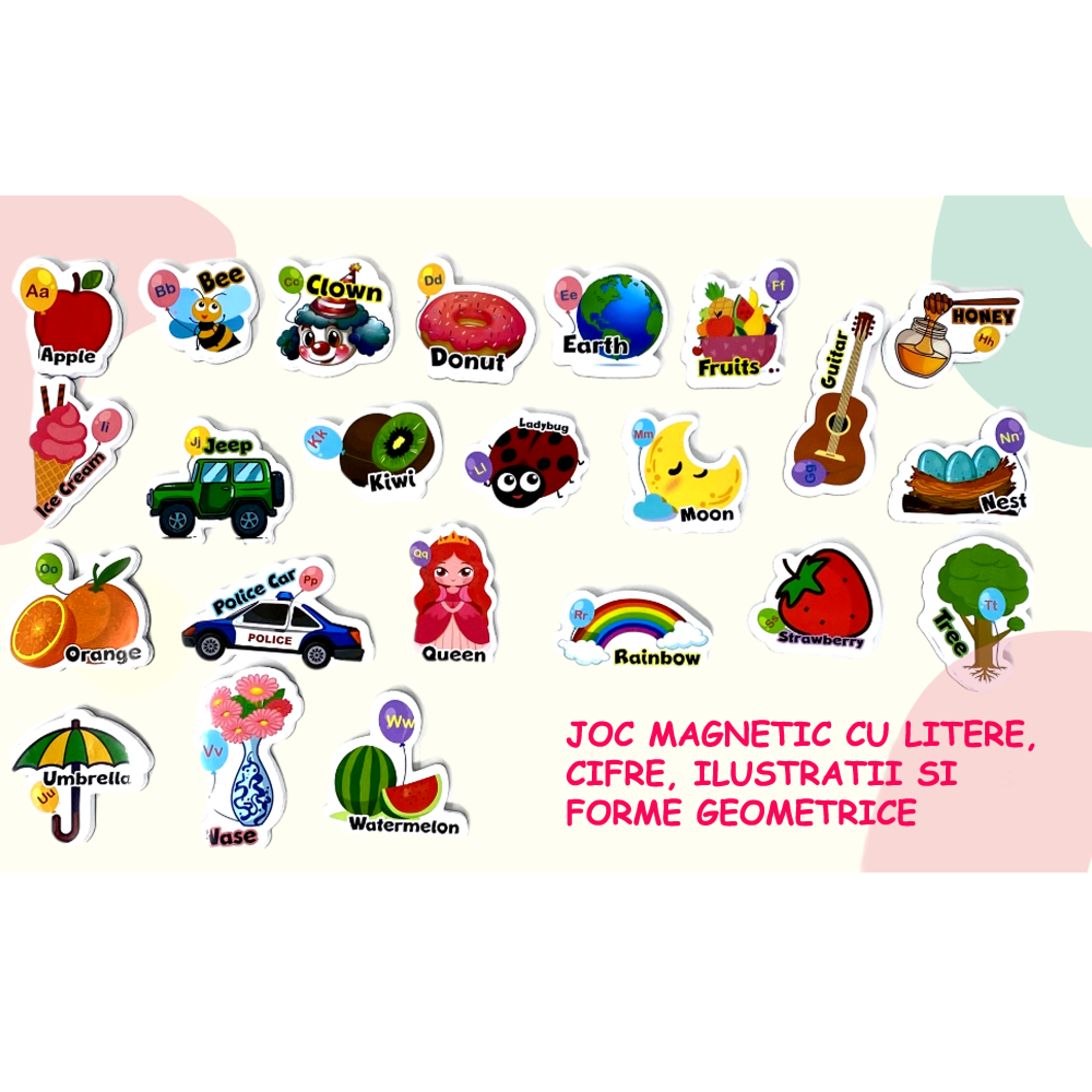 Literele si cifrele magnetice pot fi atasate pe plansa magnetica si pe alte suprafete metalice, precum frigider sau masina de spalat vase.