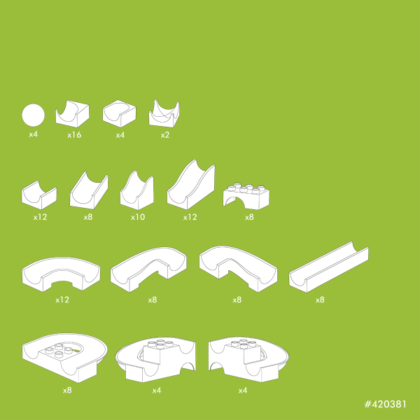 Cu circuitul cu bile din 128 de piese, toate instructiunile din orice cutie de constructie Hubelino pot fi recreate – dar numai daca exista deja suficiente elemente de constructie acasa.
