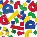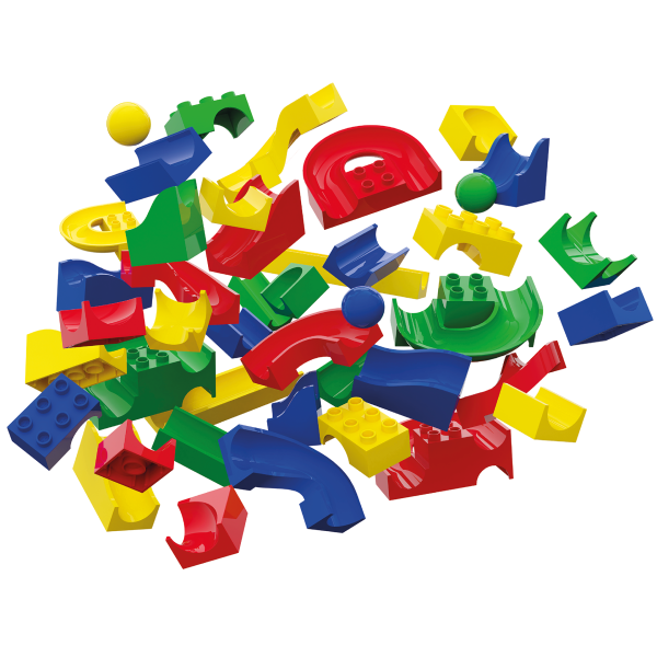 Daca exista deja blocuri de constructie, acestea pot fi combinate cu elementele noastre de rulare 100%25 compatibile pentru a crea piste minunate de marble run.