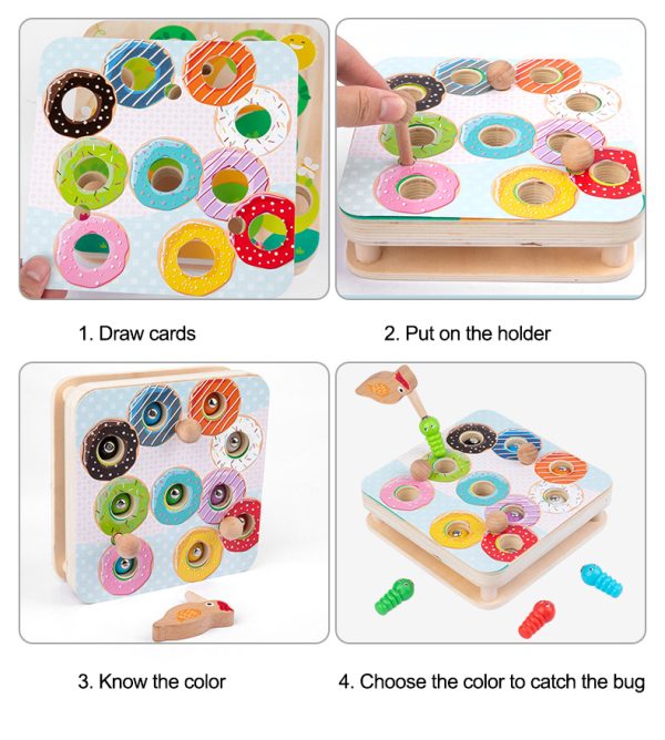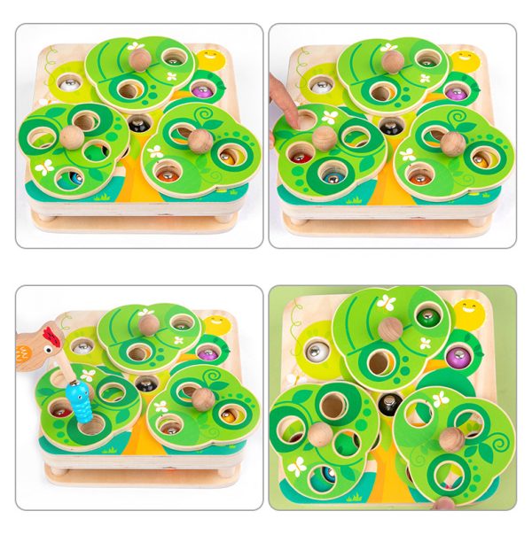 Fiecare viermisor contine un magnet. Pe langa undita, vom apela la ajutorul unei ciocanitori ca sa prindem viermisorii. Prinderea se face foarte simplu: ciocanitoarea are un mic magnet in varful ciocului cu ajutorul caruia prinde viermisorii colorati.