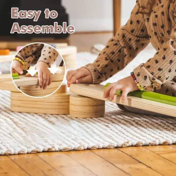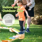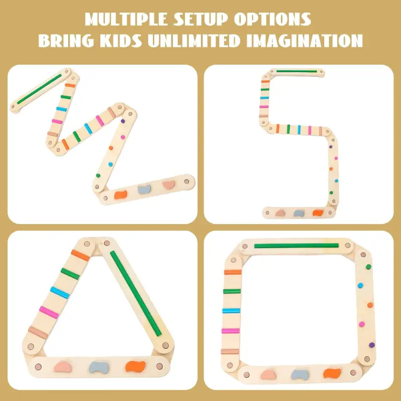 Descoperă o modalitate captivantă de a încuraja dezvoltarea abilităților motorii fine ale copilului tău cu Joc Montessori de Echilibru Traseu Senzorial Lemn!