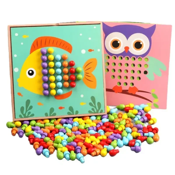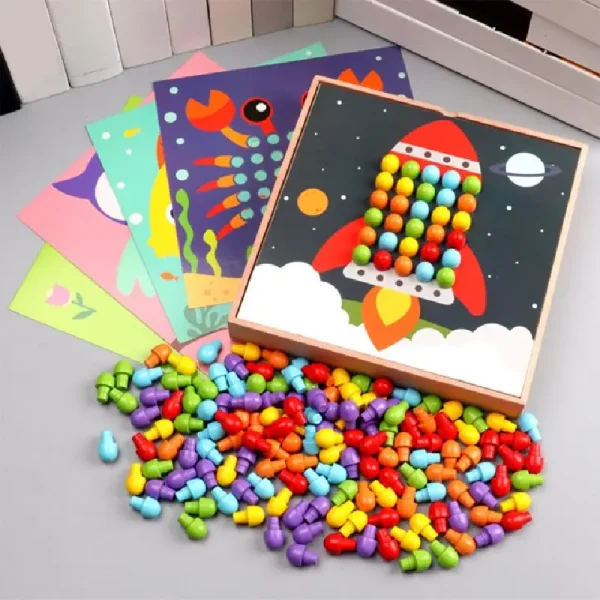 Descoperă Jocul Montessori de Îndemânare Mozaic cu Butoni – O Modalitate Captivantă de Dezvoltare a Abilităților Motorii Fine!
