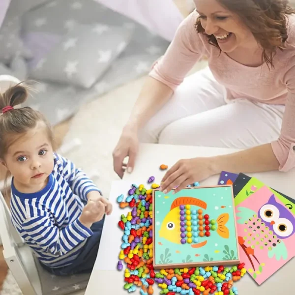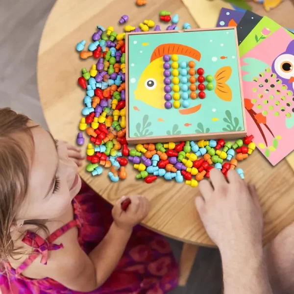 Transformă joaca în învățare și descoperire cu Joc Montessori de Indemanare Mozaic cu Butoni!