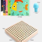 - Învățare și Explorare: Jocul Montessori de îndemânare Mozaic cu butoni oferă copiilor o platformă interactivă pentru a explora concepte matematice și spațiale, precum și pentru a învăța culori și forme într-un mod hands-on și captivant.