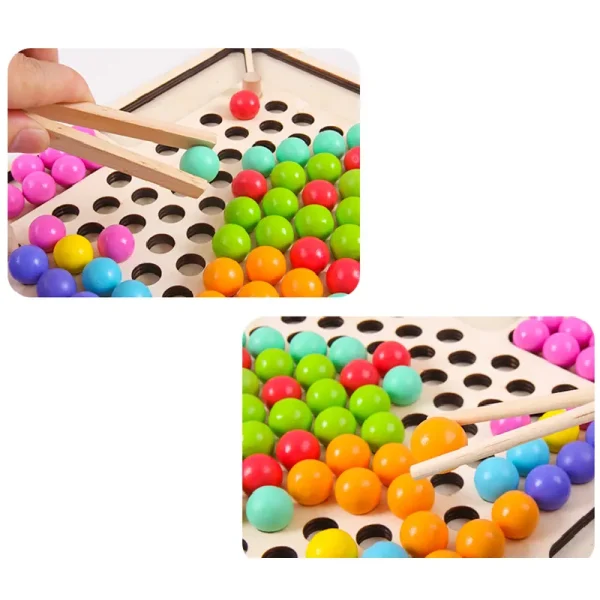 Prin manipularea bilelor colorate și plasarea lor în cutii corespunzătoare, copiii își dezvoltă musculatura mâinilor și a degetelor, ceea ce contribuie la îmbunătățirea abilităților motorii fine. Aceste abilități sunt esențiale pentru activități precum scrierea, folosirea ustensilelor, îmbrăcatul și multe altele.