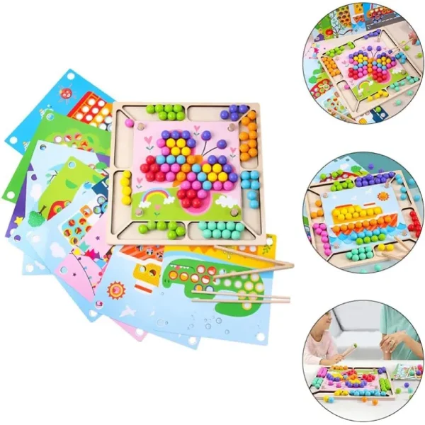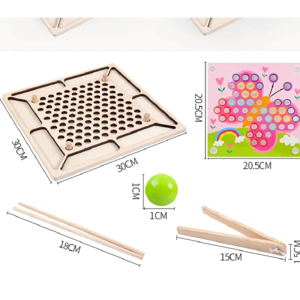 Jocul Montessori de Îndemânare și Asociere cu Bile Colorate este o activitate educațională concepută conform principiilor pedagogiei Montessori, care încurajează dezvoltarea abilităților motorii fine, recunoașterea culorilor și a formelor, precum și abilitățile cognitive ale copiilor.