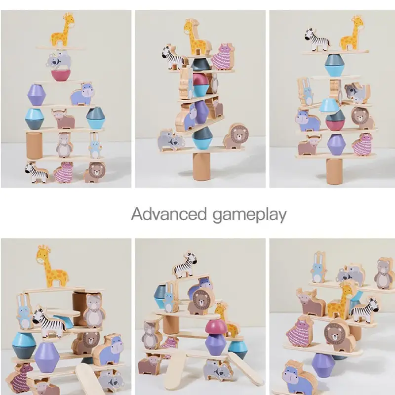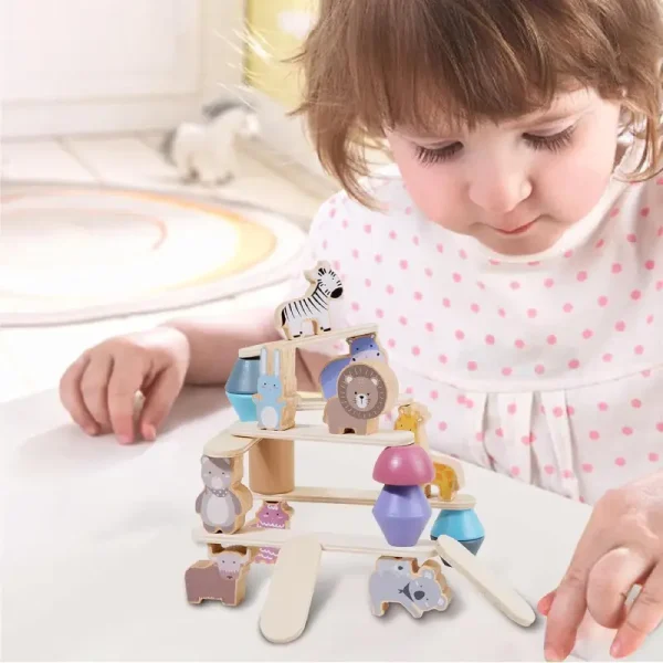 Joc Montessori de Stivuit si Echilibru cu Animale – Distracție Creativă și Învățare pentru Copii