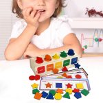 Un joc Montessori educațional de sortare a formelor și culorilor sub formă de puzzle este o modalitate excelentă de a sprijini dezvoltarea cognitivă și motorie a copilului tău.