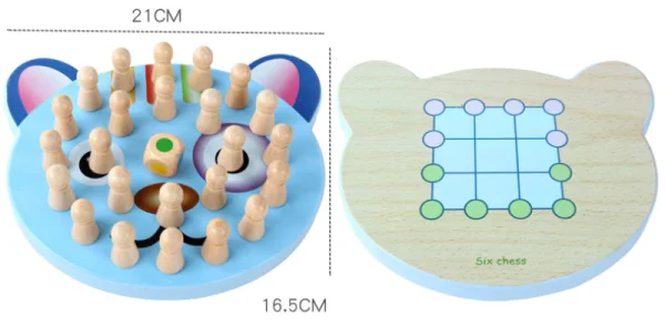 Este un joc interactiv,pentru toata familia,deoarece va antrena la joc toti membrii acesteia. Principiul este simplu! Introduceti pionii din lemn la intamplare,cu partea colorata in jos,pe tabla de joc. Aruncati zarul si cautati culoarea pe care a cazut zarul. Incercati sa va amintiti fiecare culoare pe care a avut-o fiecare pion.
