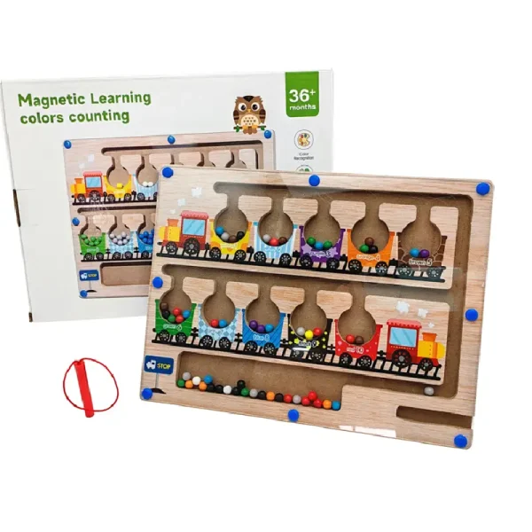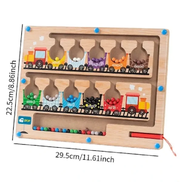 Joc Montessori Labirint Magnetic din Lemn – Sortare Educativă cu Trenuleț pentru Copii