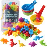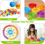 - Recunoașterea culorilor: Prin sortarea dinozaurilor în funcție de culori, copiii își dezvoltă abilitatea de a recunoaște și de a numi culorile. Aceasta este o etapă importantă în dezvoltarea limbajului.