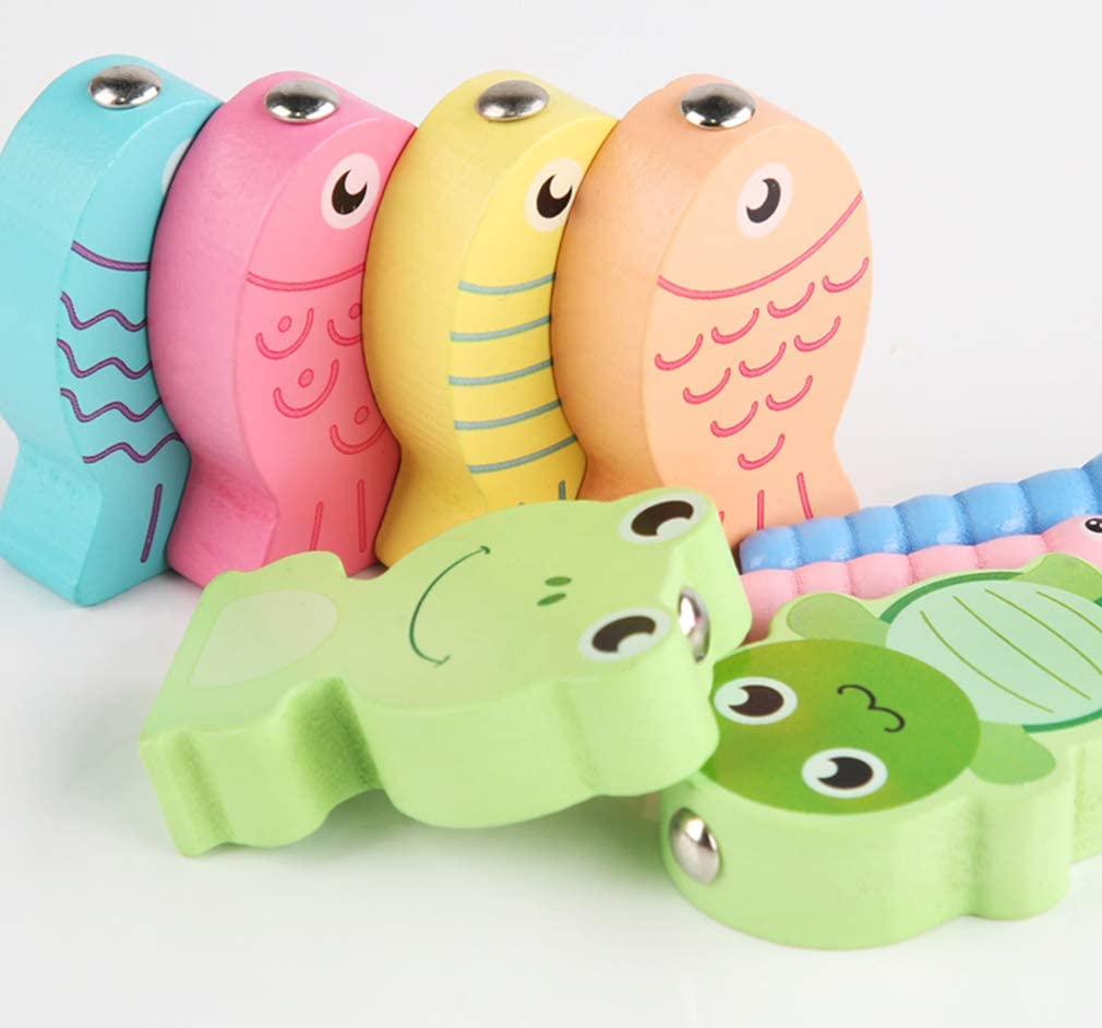 - 9 pestisori si animalute acvatice,din lemn,care au in centru un punct magnetic pentru prinderea lor