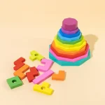 Jocul de stivuit Piramida curcubeu dezvolta coordonarea mana-ochi,abilitatile motorii fine si gandirea logica.