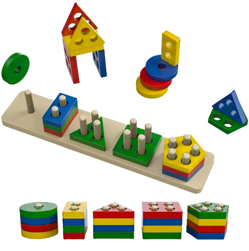 Sortatorul forme geometrice are 5 coloane si numeroase forme geometrice de tip :
