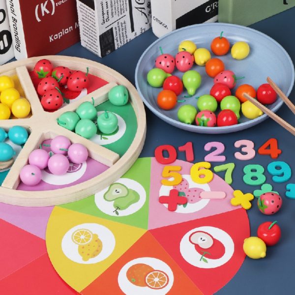 Joc Operatii Matematice Sortare Culori Fructe face parte din pedagogia Montessori,ca material didactic,pentru educatie si dezvoltare timpurie.