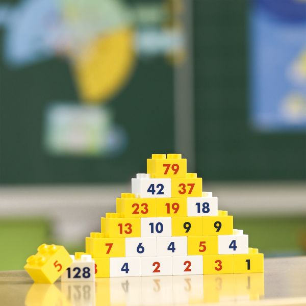 Piramidele numerice s-au dovedit a fi o sarcina productiva in clasele de matematica din scoala elementara. Blocurile de invatare unice ale prof. Kortenkamp deschid o noua dimensiune acestui concept de invatare dovedit, le ofera copiilor posibilitatea de a construi ei insisi piramide numerice in loc sa completeze spatiile libere pe hartie.
