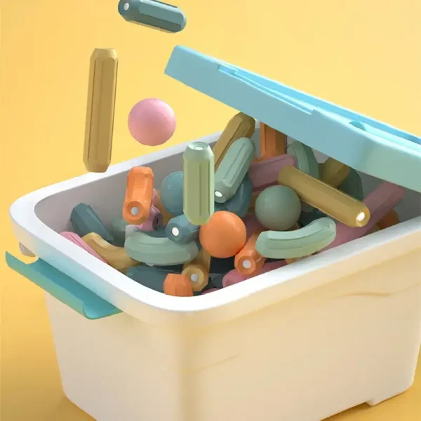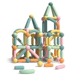 Joc STEM Magnetic de Construit 176Piese Onshine are piese magnetice de forme si culori variate care sunt usor de apucat si de manuit de catre copii.