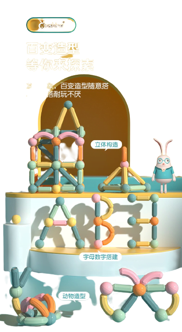 Joc STEM Magnetic de Construit Onshine 54Piese are piese magnetice de forme si culori variate care sunt usor de apucat si de manuit de catre copii.