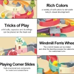 Rățuștele colorate și adorabile adaugă un element de distracție suplimentară. Acestea se deplasează pe circuit, captând atenția copiilor și oferindu-le ore întregi de joacă interactivă.