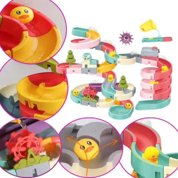 Jucărie Baie Bebe Circuit cu Rățuște – Set Interactiv cu 72 Piese pentru O Distracție Fără Sfârșit în Timpul Băii