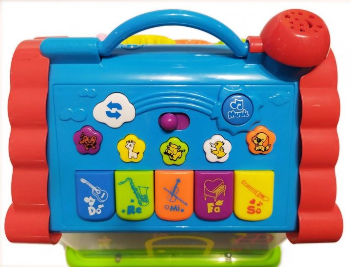 Jucarie Casuta Interactiva Muzicala cu Proiectii si Lumini este multifunctionala echipata cu diverse functii.