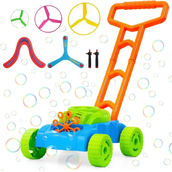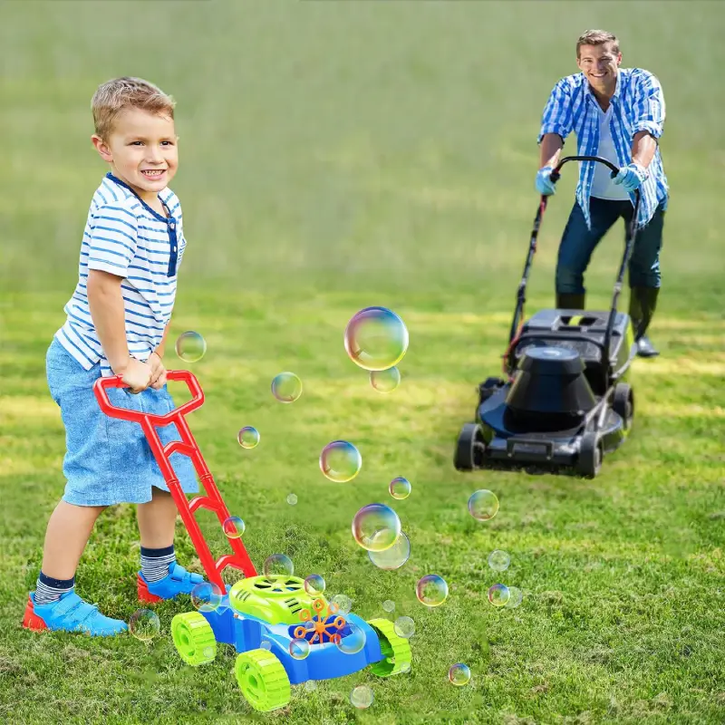 Îmbină distracția cu joaca în aer liber cu Jucăria cu Baloane de Săpun Mașină de Tuns Iarba.