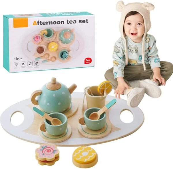 Setul de ceai din lemn arată foarte drăguț, poate atrage cu usurinta copiii.