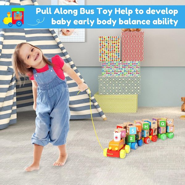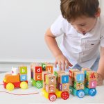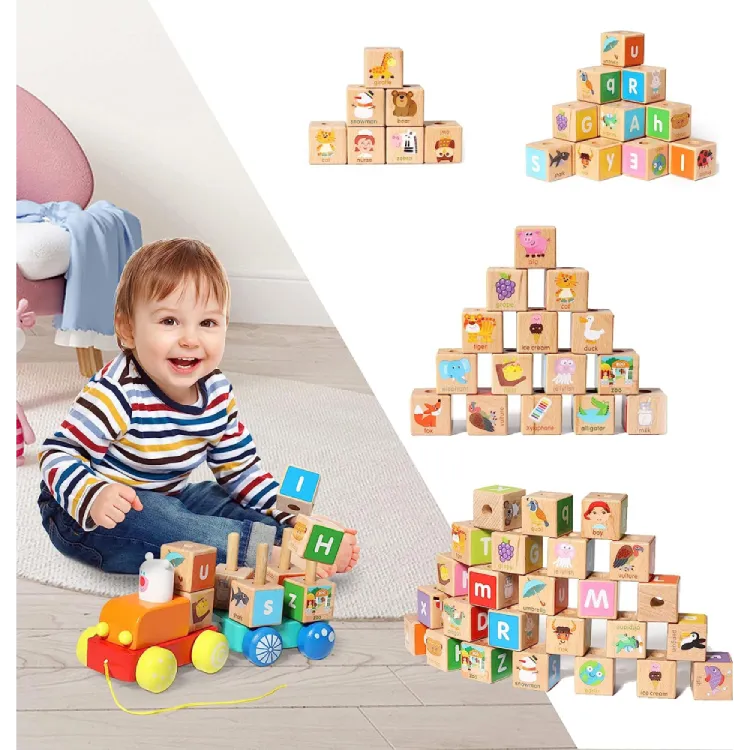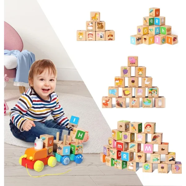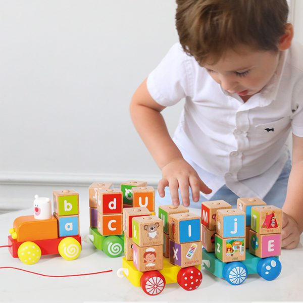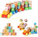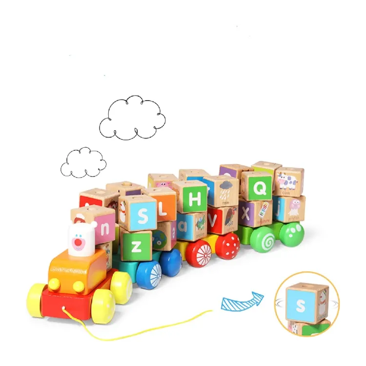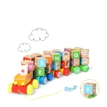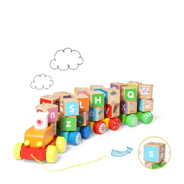 Jucarie de tras trenulet cu cuburi rotative cu alfabet si imagini stimuleaza creativitatea și dezvoltarea creierului.
