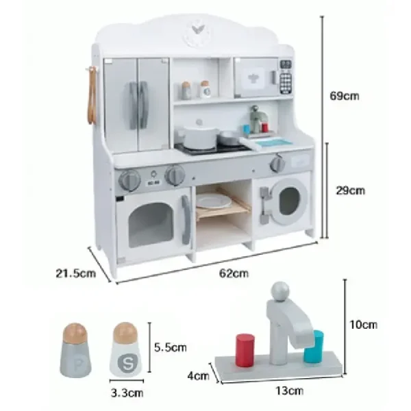 Transformă camera copilului tău într-o adevărată bucătărie cu acest set de bucătărie de jucărie din lemn, perfect pentru micii exploratori care adoră să imite activitățile adulților.