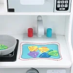 Bucătăria este ușor de montat și durabilă, oferind ore întregi de joacă educativă.