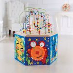 In forma de hexagon, are o multime de parghii, cadrane, manivele si activitati de labirint pentru a imbunatati abilitatile motorii fine si pentru a promova jocul cooperant. Desi un hexagon are sase laturi, aceasta jucarie are o a saptea daca numarati labirintul de margele cu rollercoaster care decoreaza partea de sus.