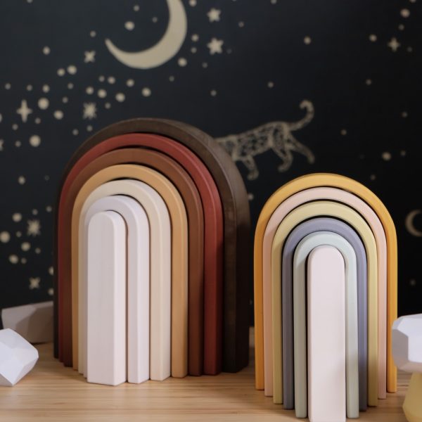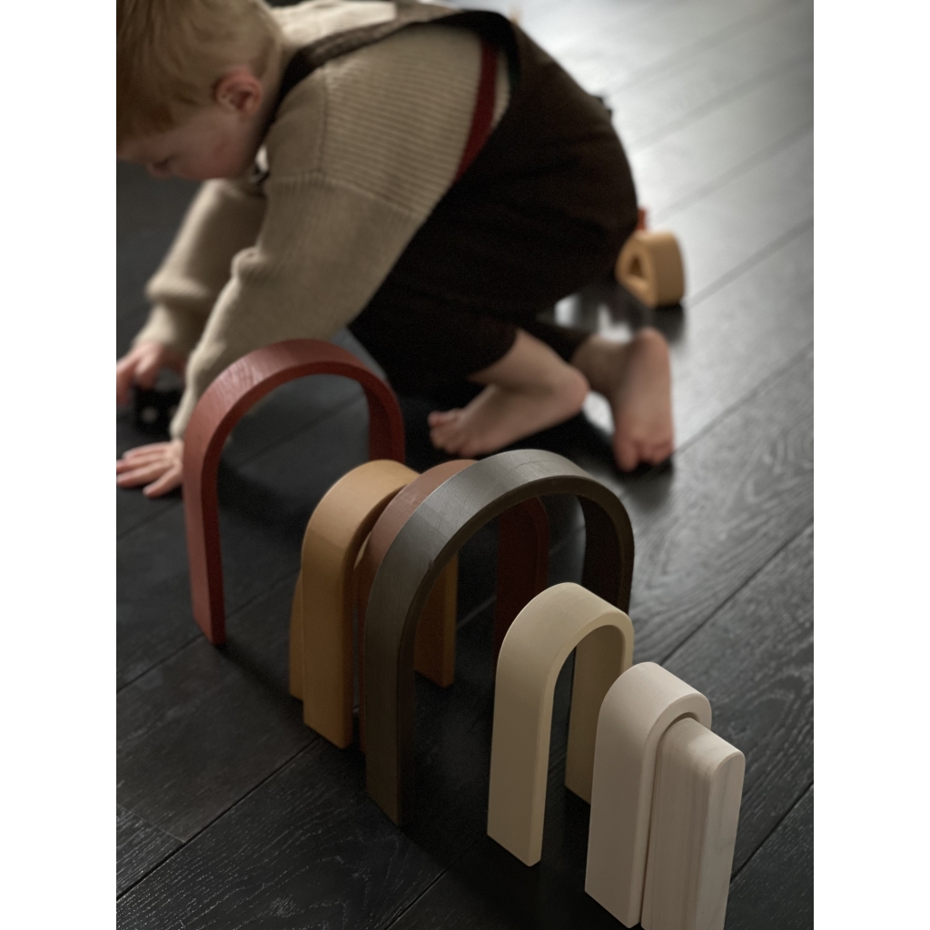 Curcubeul din lemn este o jucarie obligatorie acasa. Stivuitorul Rainbow este pentru toti copiii de diferite varste. Copiii vor gasi o modalitate de a se juca cu el. Poate fi un tunel, gard, pat, pod, orice isi poate imagina copilul. Rainbow este realizat din lemn de tei de inalta calitate.