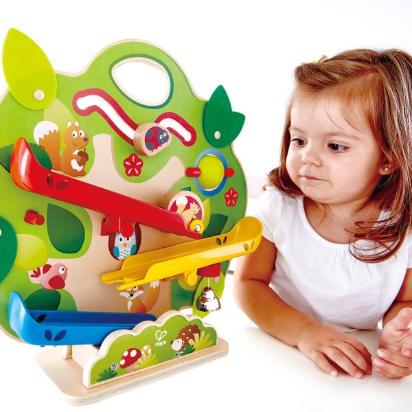 Aceasta veverita este innebunita dupa alunecarea pe cursa! Plasati-o in varful copacului si urmariti-o rostogolindu-se pe diferitele rampe si sunand clopotelul din partea de jos. Apoi, explorati celelalte caracteristici distractive.