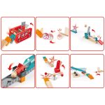 Setul include cinci sine cu bile cu doua fete, care au o pista normala si o pista in zig-zag. O jucarie din lemn plina de distractie pentru copiii de la 4 ani in sus.