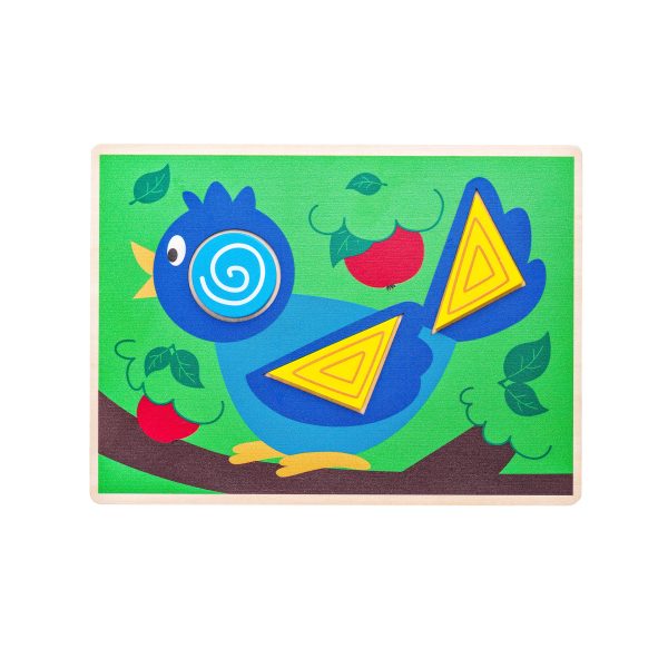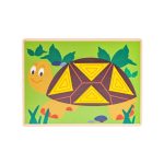 Cutia din lemn contine 10 placi de imagine. Fiecare placa are decupaje sub forma de forme geometrice. Copilul pune in imagine formele corespunzatoare si astfel dezvolta logica si combinatia subtila.