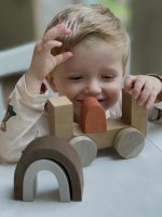 Aceasta masina are o forma unica si poarta un curcubeu in loc de pasageri. Undeva deasupra curcubeului, cerul este albastru, iar visele pe care indraznesti sa le visezi chiar devin realitate! Aceasta jucarie interactioneaza cu simturile unui copil si il ajuta sa dezvolte o intelegere a lumii fizice- masa, miscare, inertie, impuls, precum si ajuta la exersarea imaginatiei, a da viata povestilor.
