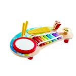 Jucaria din lemn pentru copil include o toba, xilofon, chimval, scratchboard, clapa si doua bete.