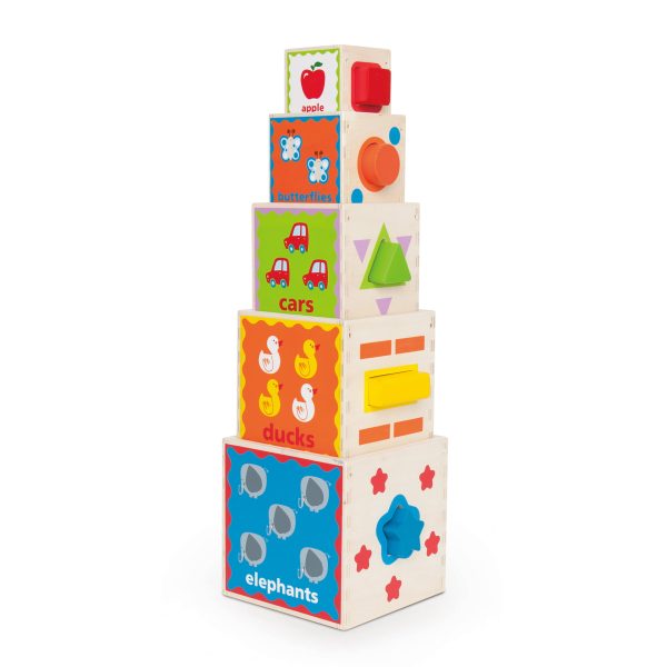 Setul de blocuri de stivuire este excelent pentru exersarea conceptelor comparative, cum ar fi mai mare/mai mic. Puteti fie sa construiti turnul, fie sa le incadrati dupa dimensiune.