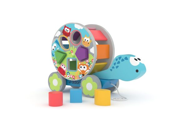 Jucarie de tras- broasca testoasa- Sortam forme, invatam culori si forme geometrice.