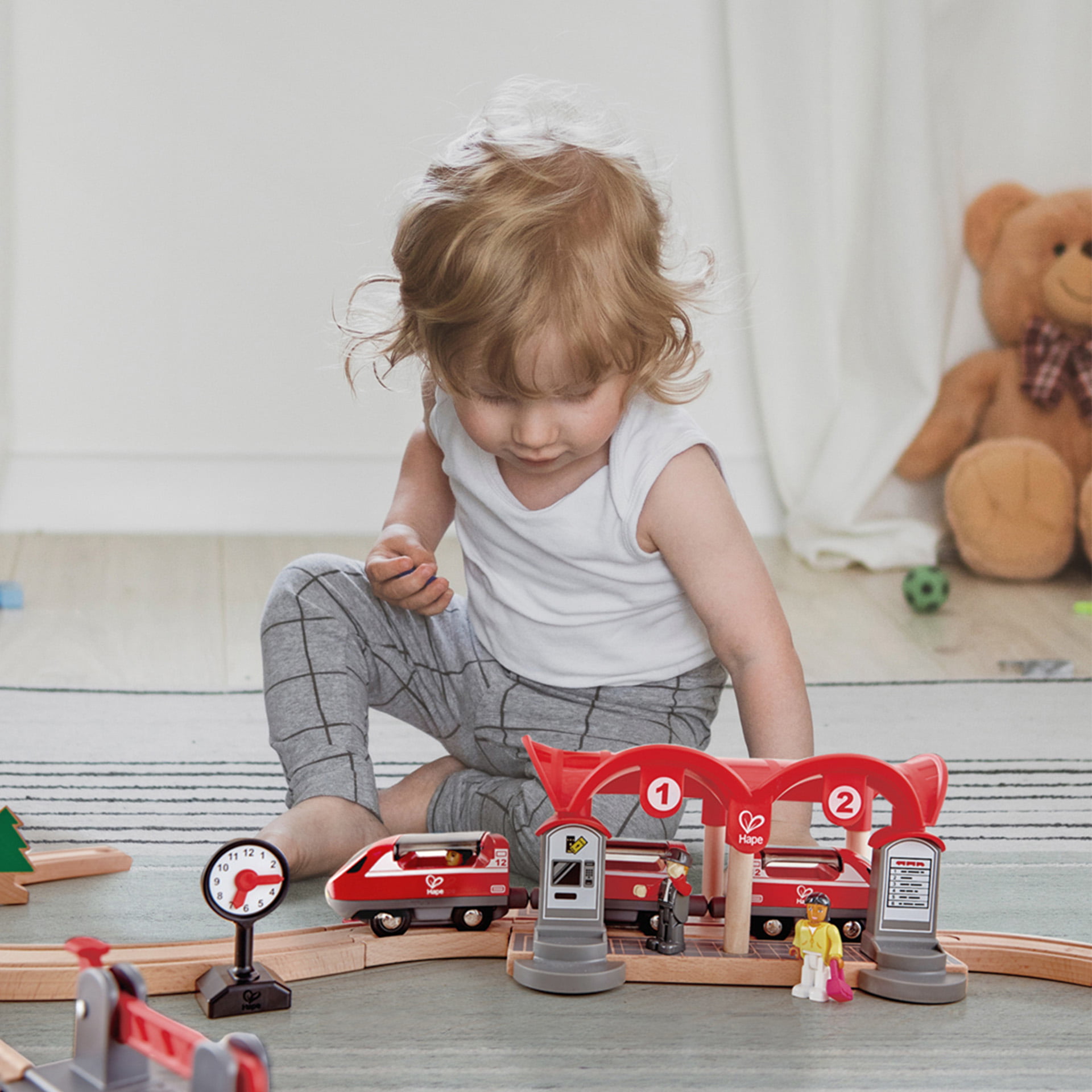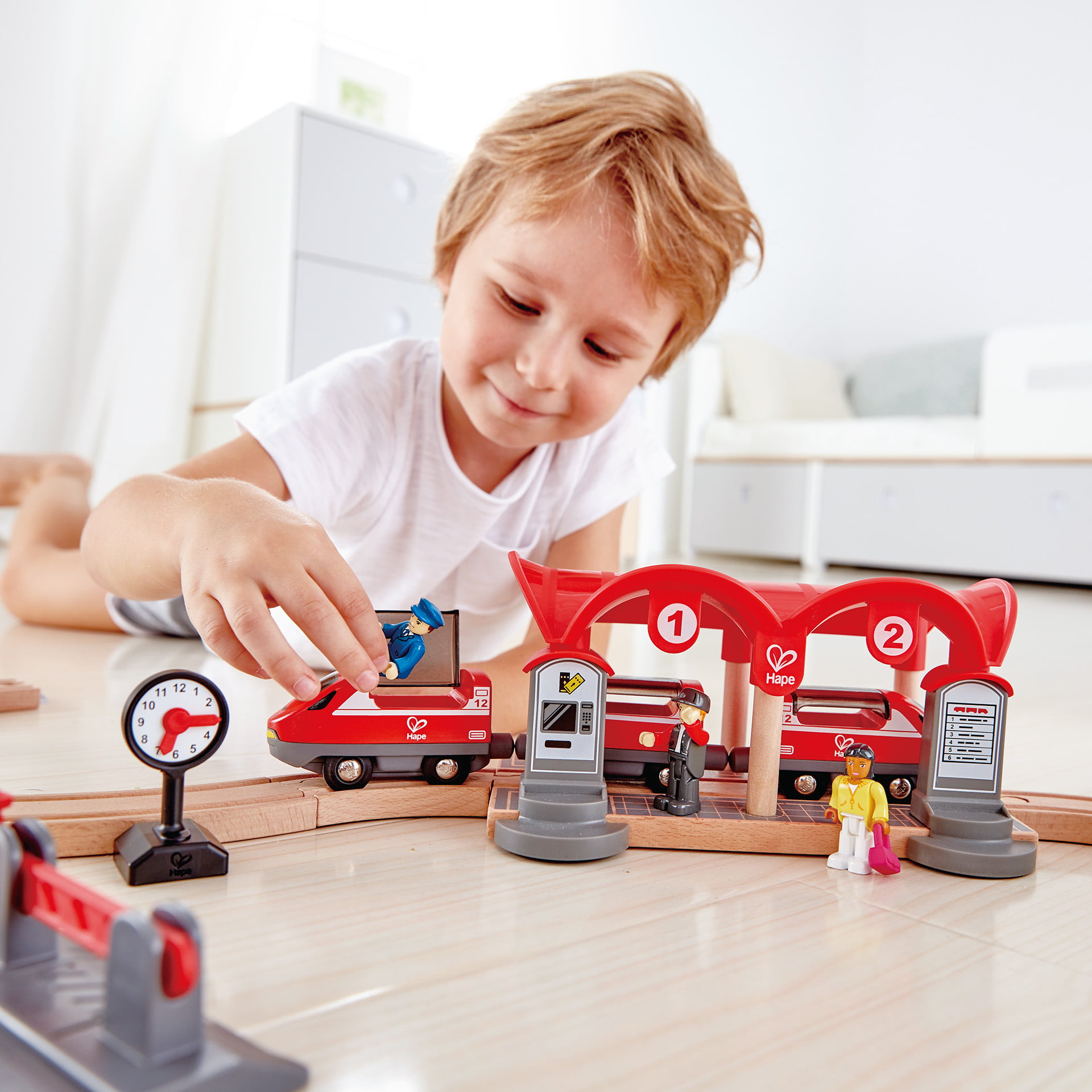 Figurinele au fost concepute pentru a se potrivi in interiorul vagoanelor si includ un pasager cu o geanta si un lucrator feroviar cu semnal. Lasati imaginatia copilului sa zboare, deoarece le permit pasagerilor sa interactioneze intre ei si sa se opreasca la semnale.