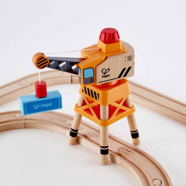 Jucarie din lemn – Set tren de marfa cu macara (34 piese)