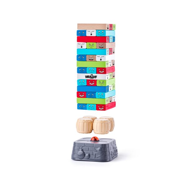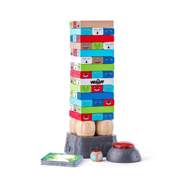 Joc palpitant pentru intreaga familie. Jucatorii arunca cu zarul. In fiecare tura scot treptat pietre de joc de culoarea care corespunde culorii de pe zarul de joc. Piatra pe care o scot o pun deoparte. Pentru scoaterea pietrei este insa stabilita o limita de timp care este insotita de un semnal sonor accelerat. Daca limita nu este indeplinita, suportul electronic darama turnul. Jucatorii pot alege din doua moduri: 15 si 30 de secunde pana la daramarea turnului. La cine cade, va indeplini o sarcina pe care o trage de pe carte.
