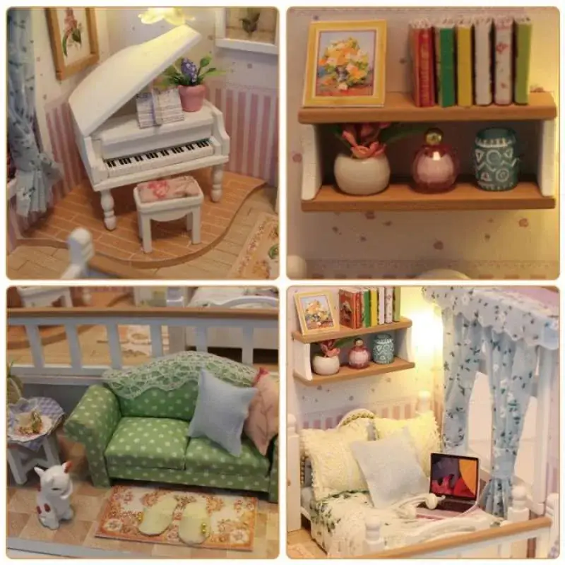 Cu decorațiuni proiectate realist și ornamente detaliate, această mini casă de păpuși DIY arată exact ca cea reală! Accesoriile în miniatură, plante ornamentale, mobilier drăguț și iluminatul în întuneric transformă trusa de construcție într-un adevărat basm.