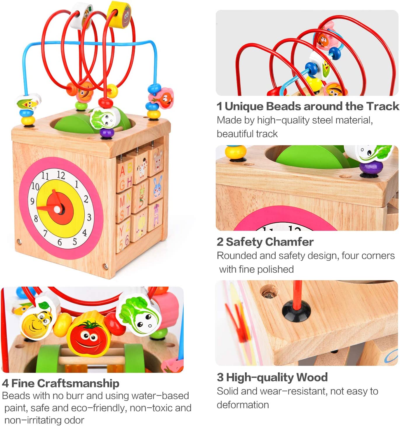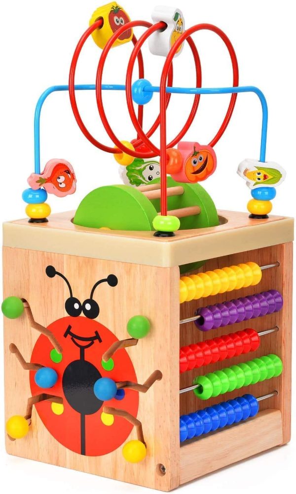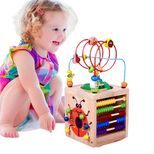Jucarie Educativa Cub Multifunctional 6in1 Buburuza este una din primele jucarii din lemn pe care cei mici le pot folosi pentru joaca,stimularea abilitatilor,invatare.