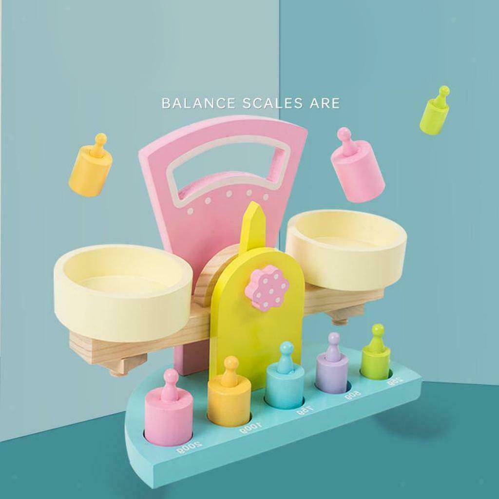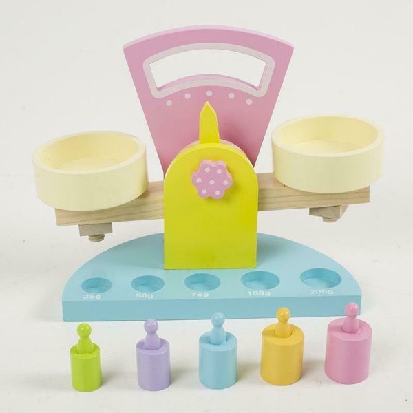 Jucarie Educativa Montessori Lemn Balanta ajuta copiii sa invete notiuni de echilibru si greutate. Vor putea cantari diverse fructe, legume, vor realiza jocuri de rol, facand pe micul comerciant. De asemenea isi vor imbogati limbajul si imaginatia, dar si coordonarea ochi-mana. Balanta este perfecta pentru cantarirea obiectelor mici, pentru a cantari si compara. Contine :