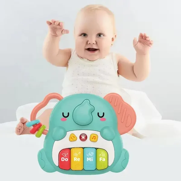 Jucarie Elefantel Pian Muzical Senzorial – Jucărie educativă interactivă Elefant cu sunete și lumini!