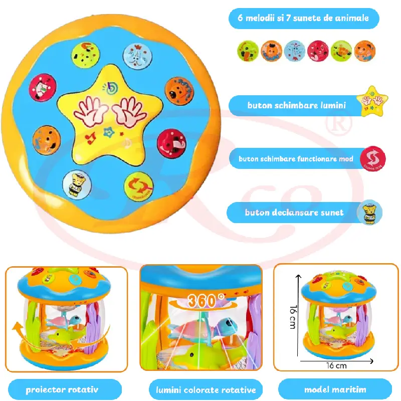 Jucarie Interactiva Bebe cu Proiector Rotativ si Lumini – Muzică, Lumină și Mișcare pentru Bebeluși Fericiți | CaraToys